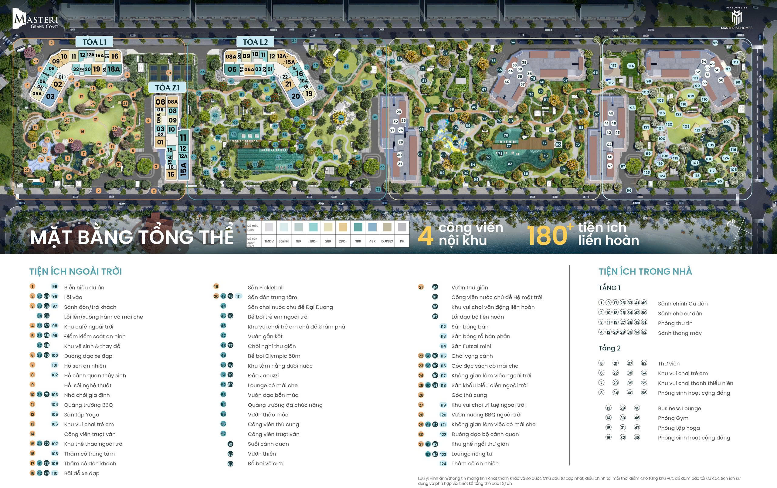 Tiện ích nội khu: 04 công viên liên hoàn, hơn 180+ tiện ích cao cấp – nghỉ dưỡng mỗi ngày ngay tại nhà